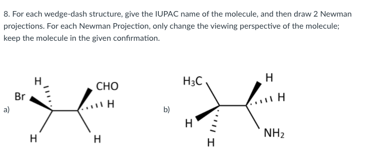 Solved 8 For Each Wedge Dash Structure Give The Iupac Name Chegg Com